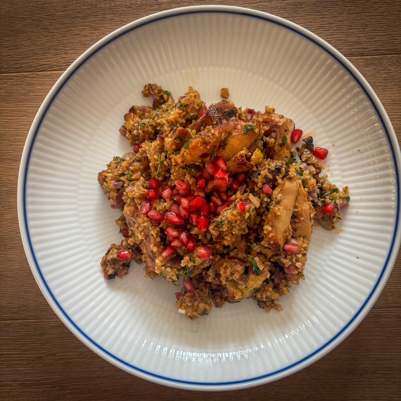 Nahöstlicher Grillhähnchensalat mit Bulgur und Granatapfel