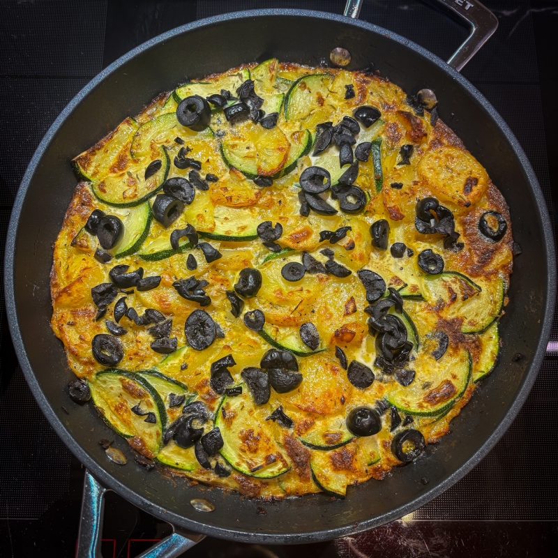 Kartoffel-Tortilla mit Zucchini und Oliven
