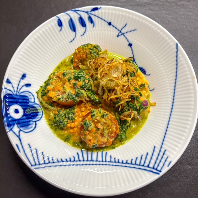 Dal mit Kokosmilch, Tomaten & Spinat