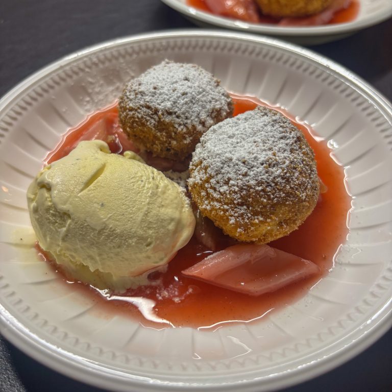Topfenknödel mit Rhabarberkompott